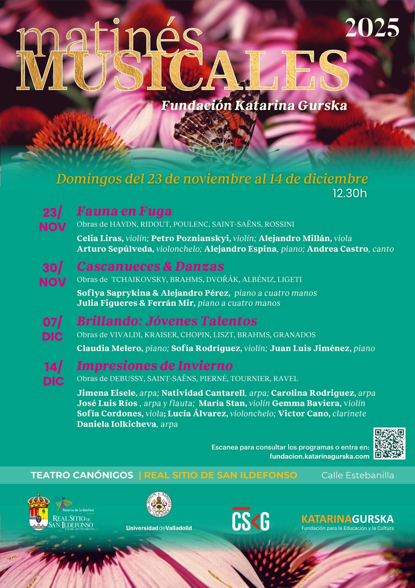La Fundación Katarina Gurska y el CSKG en colaboración con el Ayuntamiento del Real Sitio de San Ildefonso, presenta una nueva edición del Festival Matinés Musicales 2025, un ciclo que convierte las mañanas de domingo en una cita con la música clásica más cercana, fresca y familiar.
