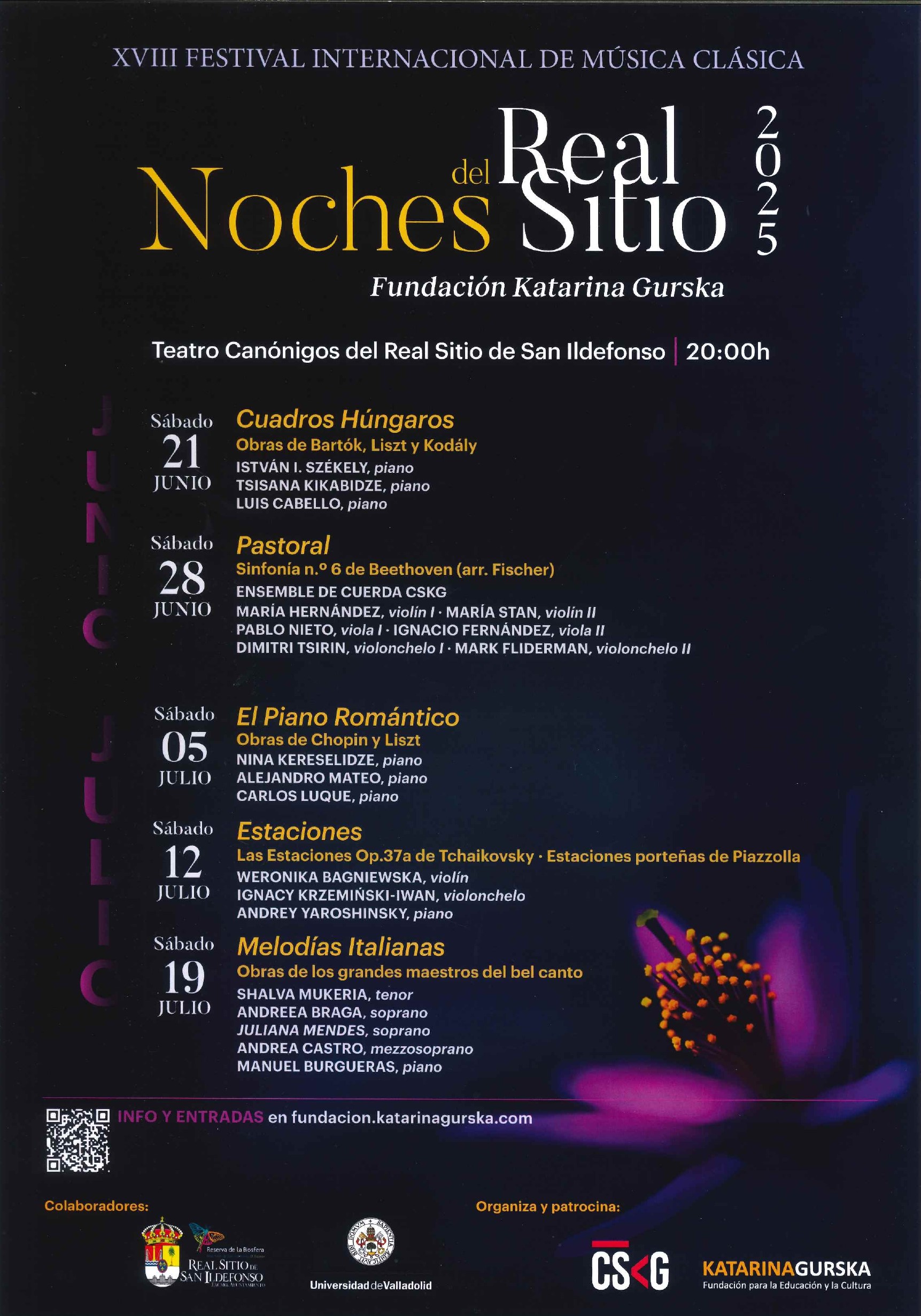 El XVIII Festival Noches del Real Sitio, organizado y patrocinado por la Fundación Katarina Gurska en colaboración con el Ayuntamiento del Real Sitio de San Ildefonso vuelve los sábados del 21 de junio al 12 de julio.