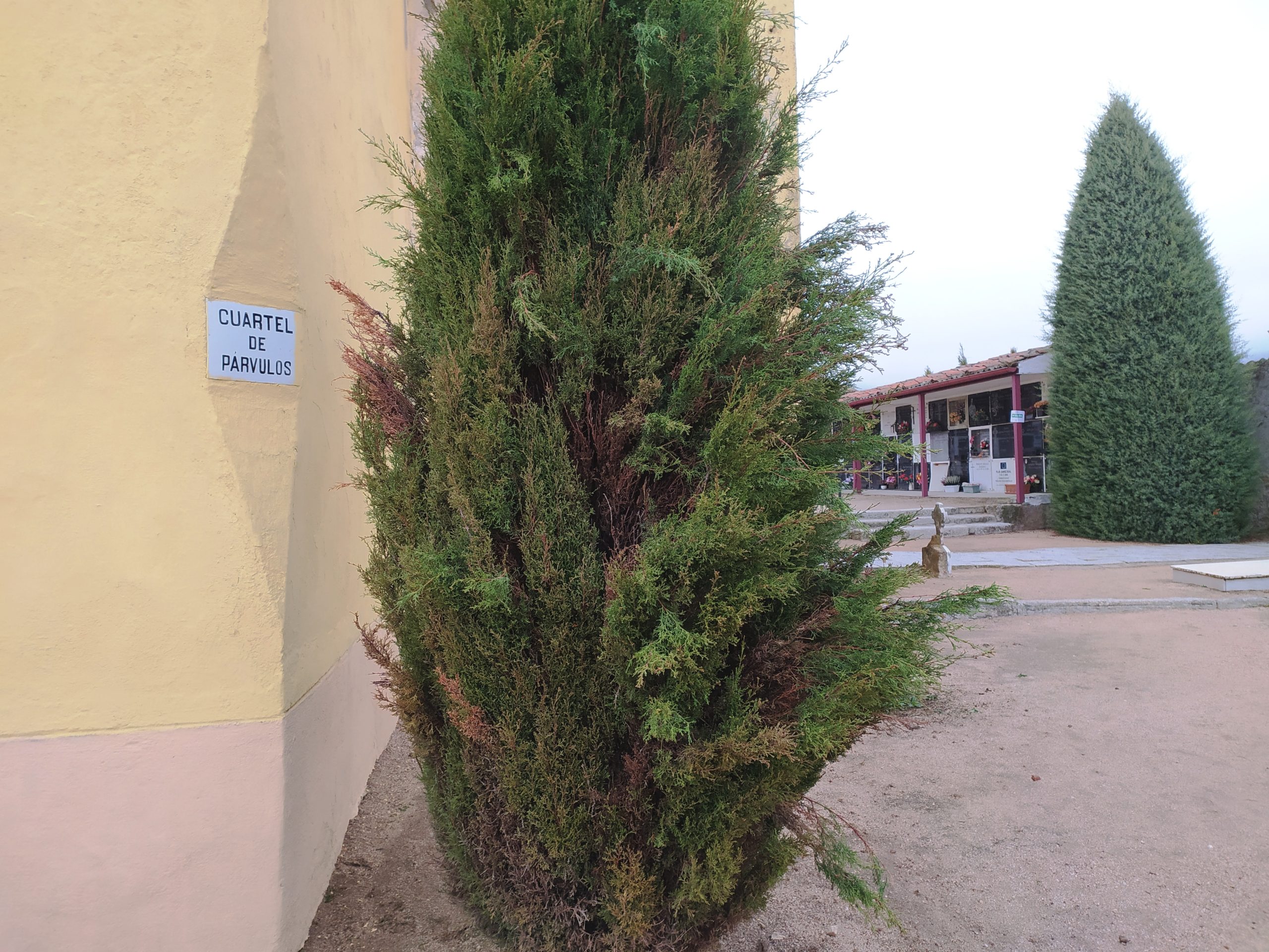 En primer lugar se encuentra apartado de la población, en un lugar bien ventilado, sin contacto con la población, cercado, con una capilla y sus dependencias en el interior y con un osario.