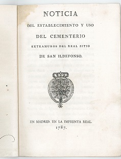 En 1781 hubo una epidemia de peste en un pueblo del norte de España provocando una gran mortandad entre la población que fue atribuida al hedor intolerable que exhalan los cadáveres sepultados en el atrio de la iglesia parroquial. Este hecho obligó al gobierno de Carlos III a tomar una serie de medidas, a través del Consejo de Castilla, que afectaron a la salubridad pública. De esta forma, los camposantos se apartaron de las poblaciones, con el objeto de preservar la salud pública, siendo el Real Sitio de San Ildefonso el primer municipio en realizar las inhumaciones en un cementerio. Desde ese momento, numerosos cementerios civiles tomaron como modelo el del Real Sitio y se fueron ubicando en lugares apartados de las poblaciones, bien ventilados, cercados y con una capilla en el interior, además de un osario.